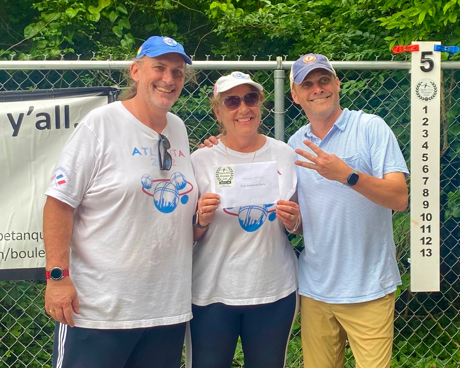Our friends, Athens Classic City Pétanque Clubhad their first FPUSA Regional: a Mixed Triples Tournament.It was a great success !!Bravo to all CCPC organizators and volunteers for the event. Main Concourse winners Concourse 1st place: Kaye, Dale & Debby (AIBC) Image 1 of 4 Consolante winners Consolante 3rd place: Emmanuel, Tricia & Quito (APL) Image 3 of 4 Pics of the event ! [Show slideshow]